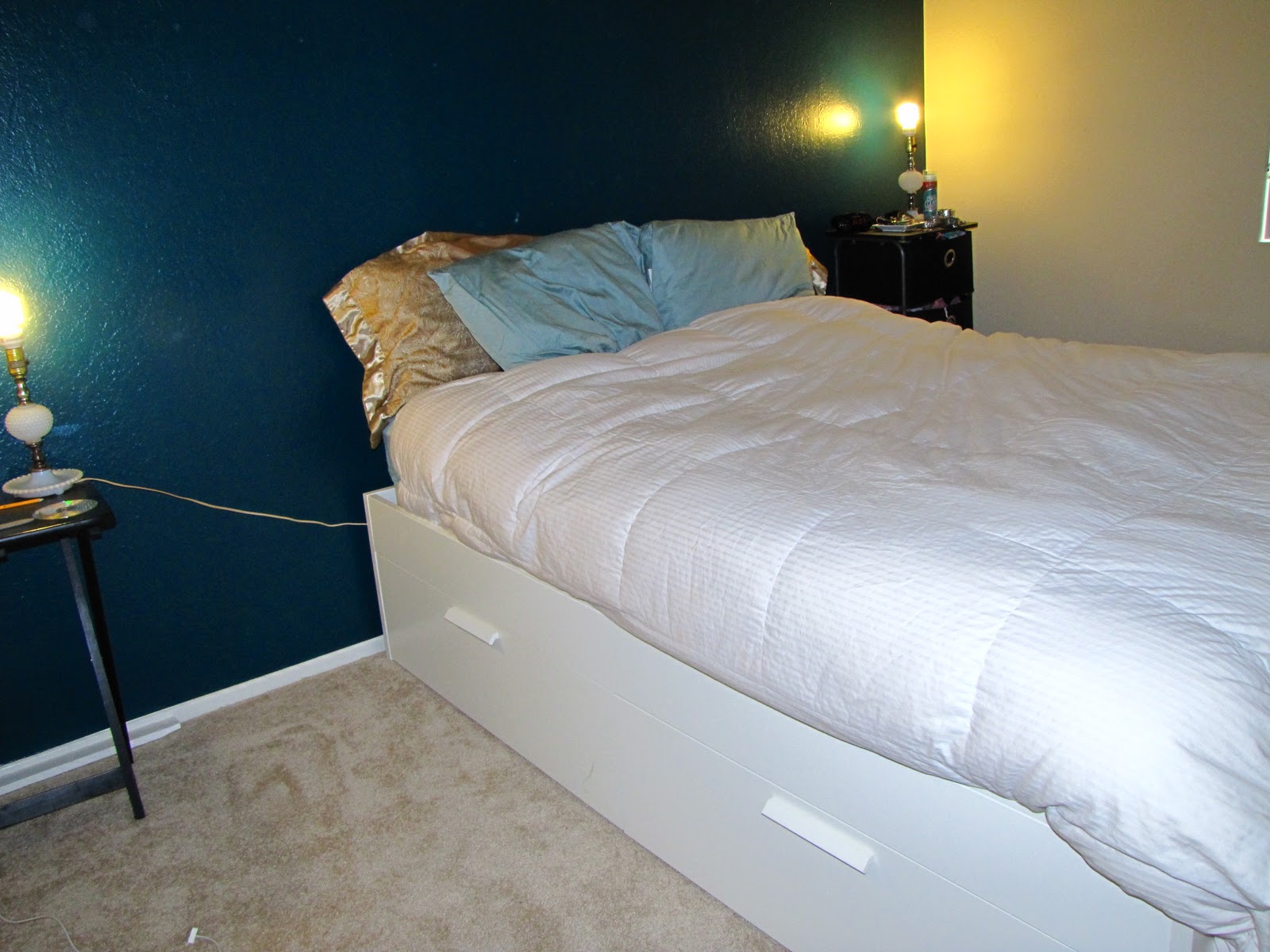 I love the paint color in here too (Sherwin Williams Peacock Blue).