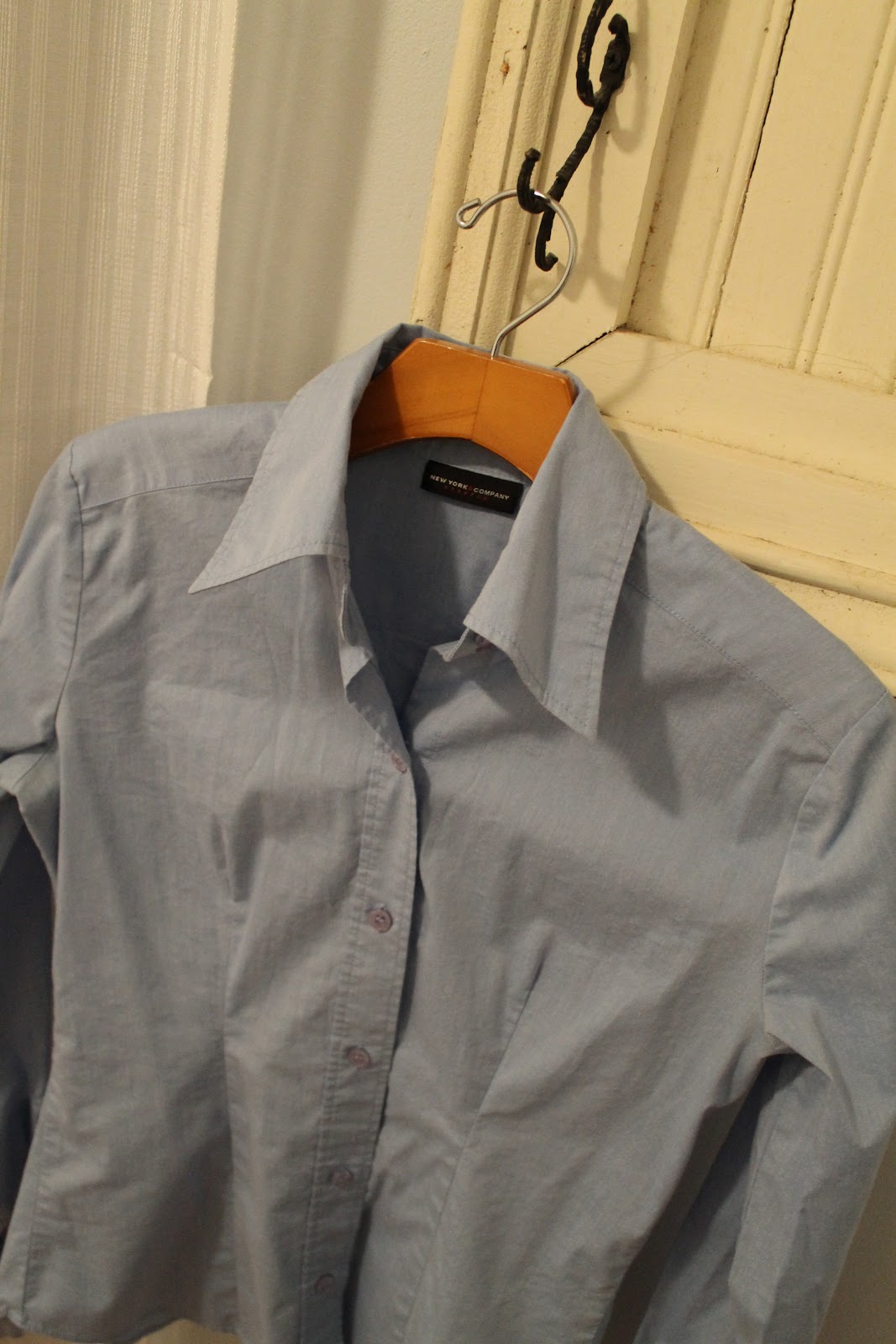 A few of the embellished shirted I loved the most actually had pretty simple embellishments, so I thought I could DIY them in a snap! I grabbed a dress shirt from my closet that I haven’t worn in quite a while which to me always means it needs to be tweaked or tossed. But it fits great so this DIY tweak will be perfect!