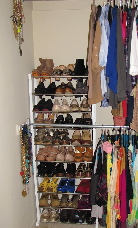 You've made good use of your space! I agree I like seeing my stuff right in front of my face or I never wear it. Also, you have really nice shoes!!