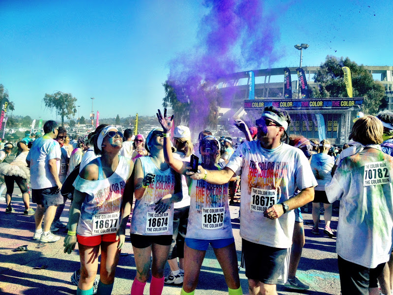 We started off with The Color Run 5K marathon at Qualcomm Stadium .