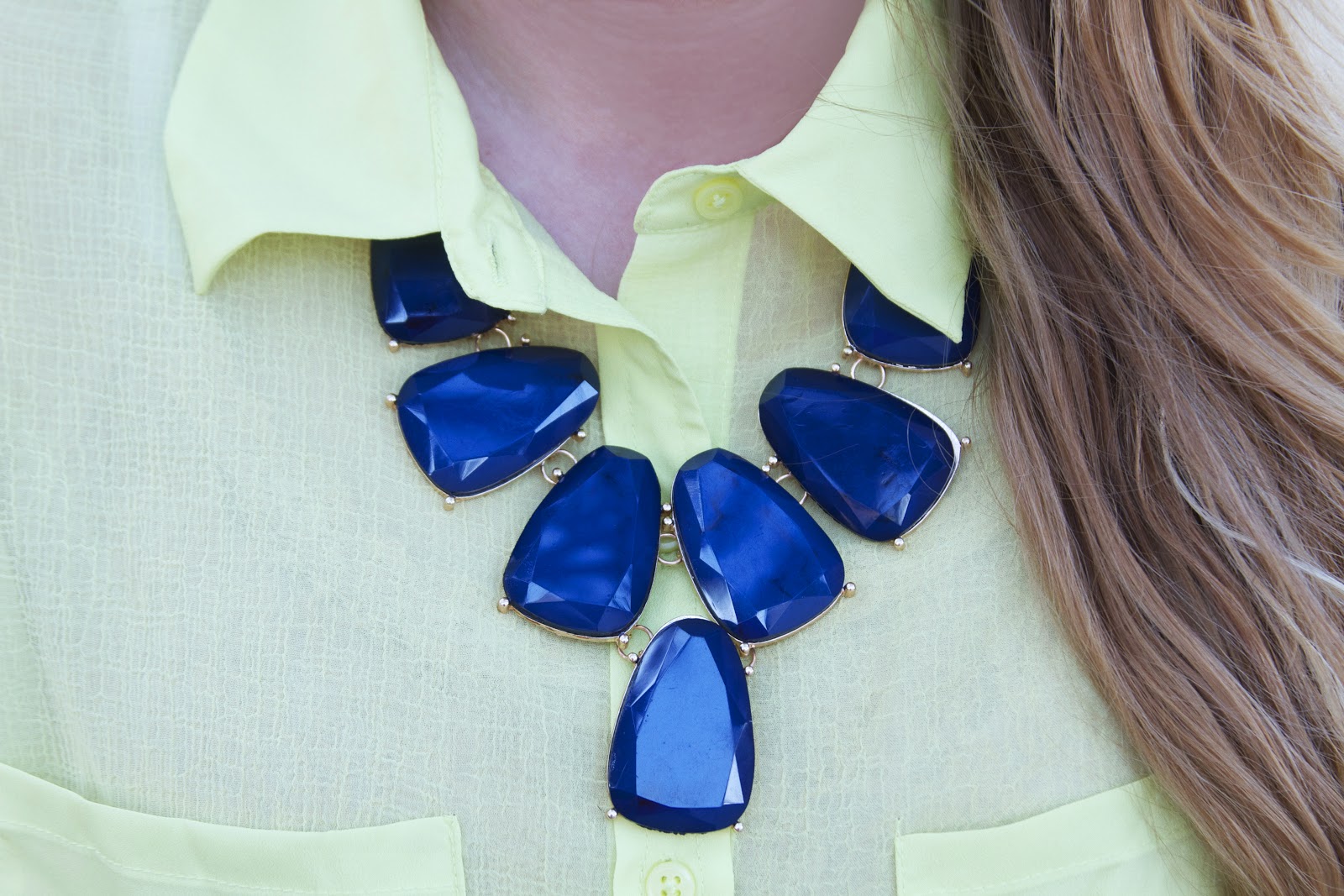 I absolutely love the neon and the navy necklace together. You look gorgeous!