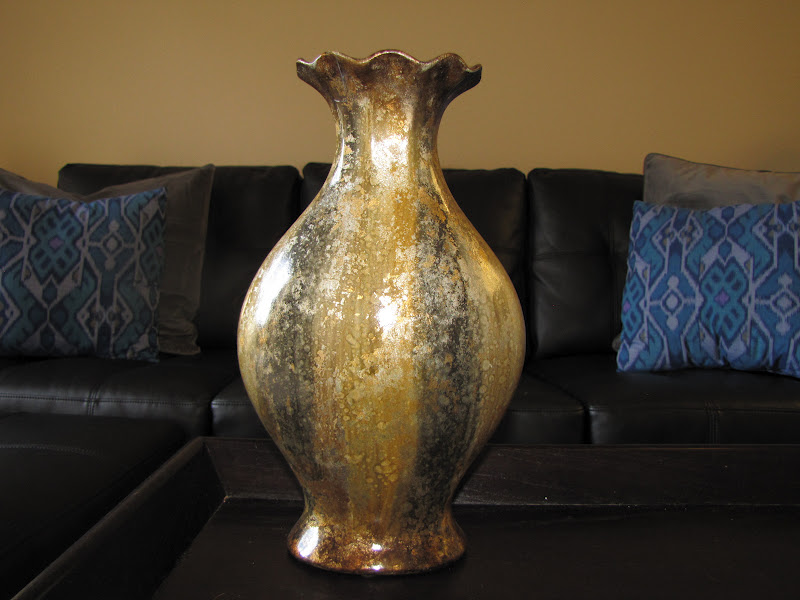 I buy the vase, go on my happy way out the store, open my trunk to put the vase in and BAM. The vase hits the inside of my trunk. I hear a little shatter…REALLY? I look inside the bag and luckily it was just a fat chip that had broken off. I contemplated going back in and returning it, but it was the LAST one and the only vase that remotely matched the chocolate brown walls and greyish-green microfiber couch.