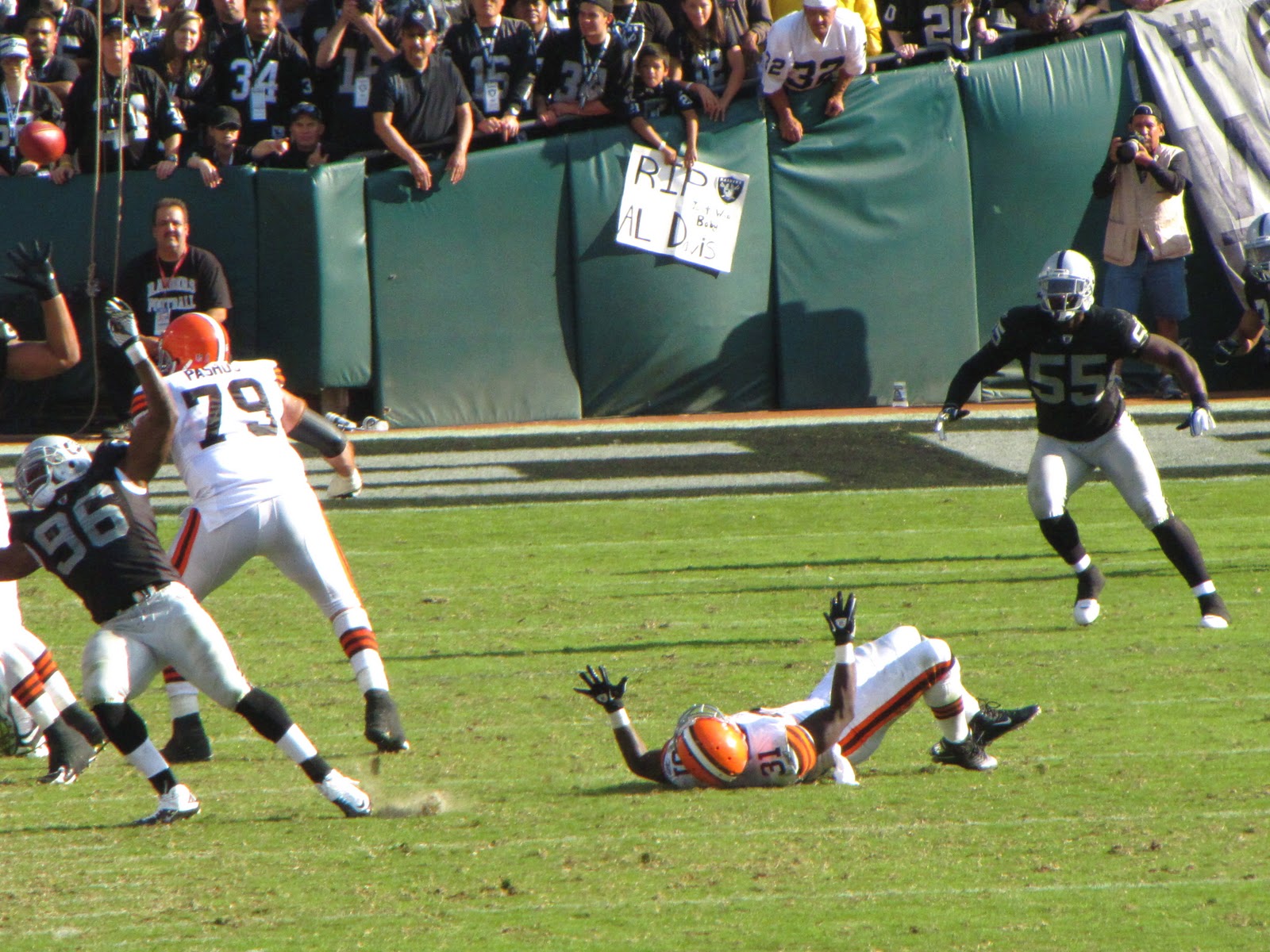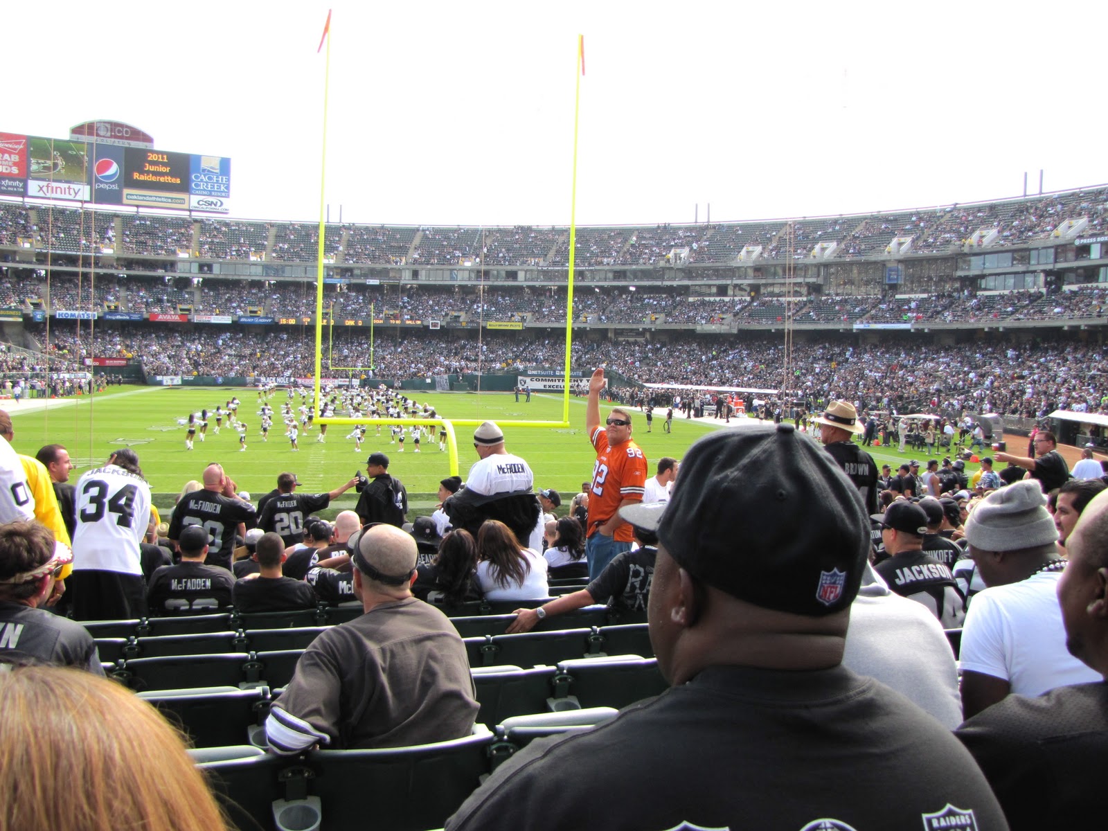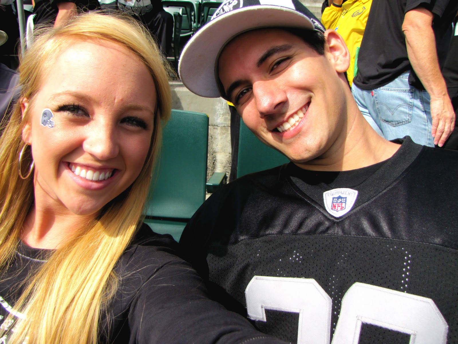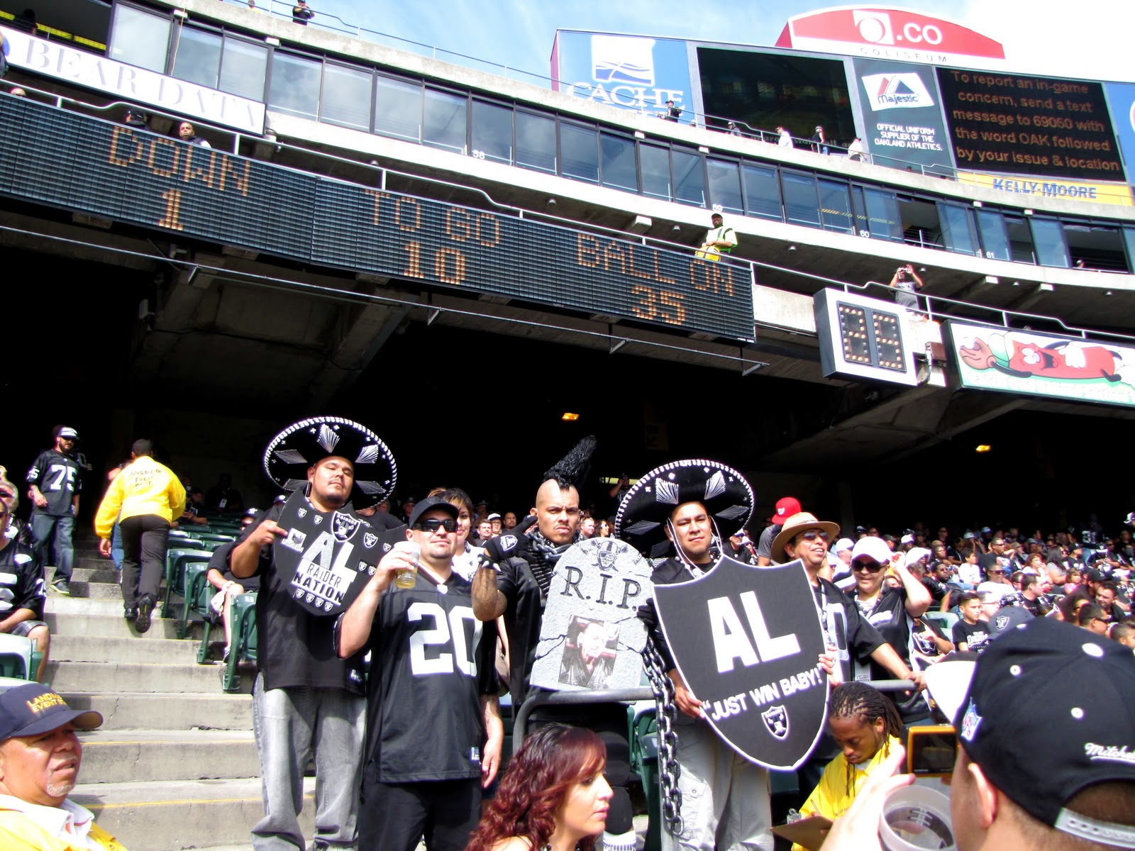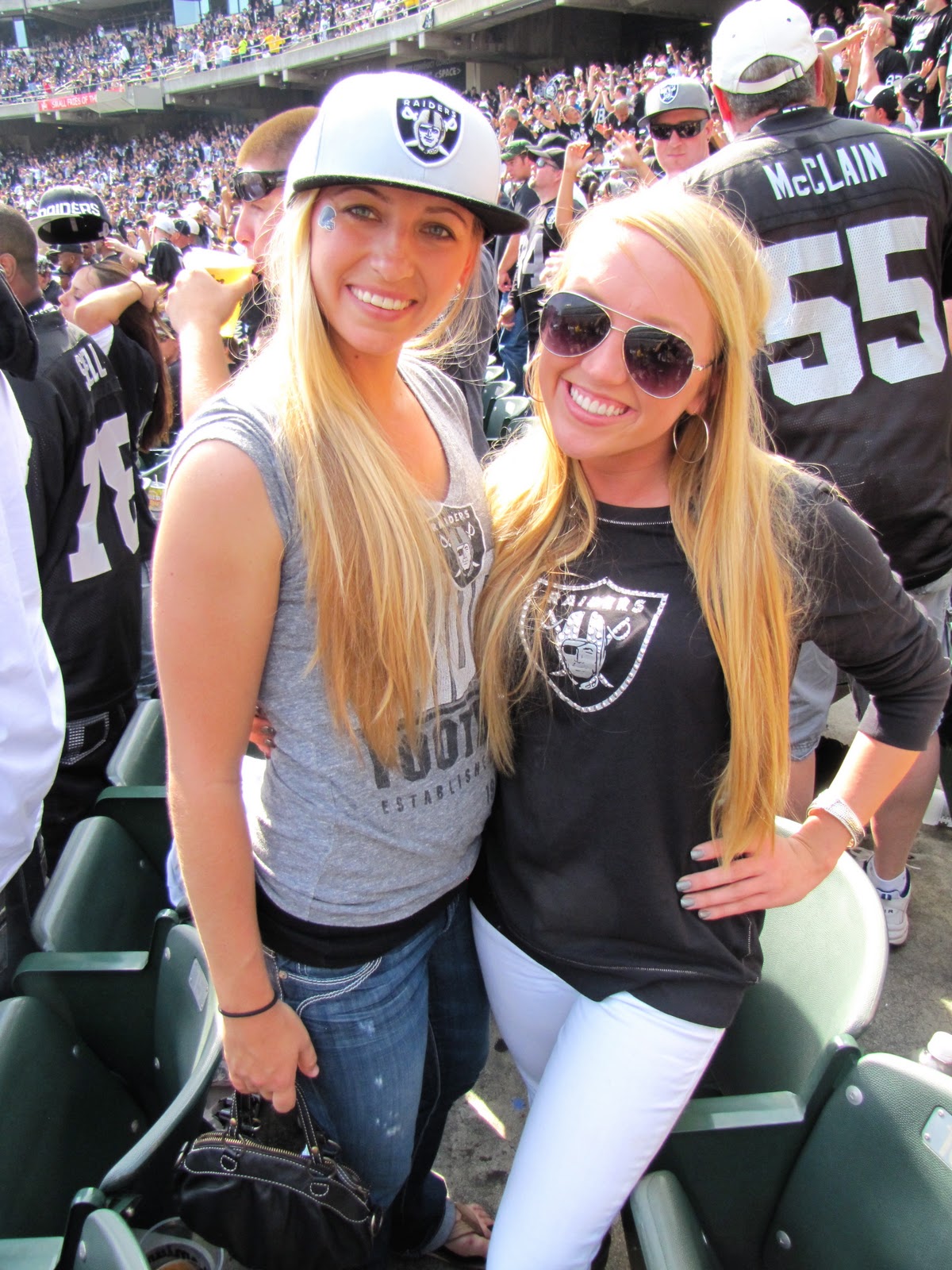 This weekend the beau and I and a few friends headed up to OAKLAND to see the Raiders play some football…and they kicked booty! Unfortunately, our quarterback got hurt and may be out for the season š but we aren’t losing hope! The game was the first home game since Al Davis’ passing, and they had a special ceremony so we were glad to be there to celebrate his life!
