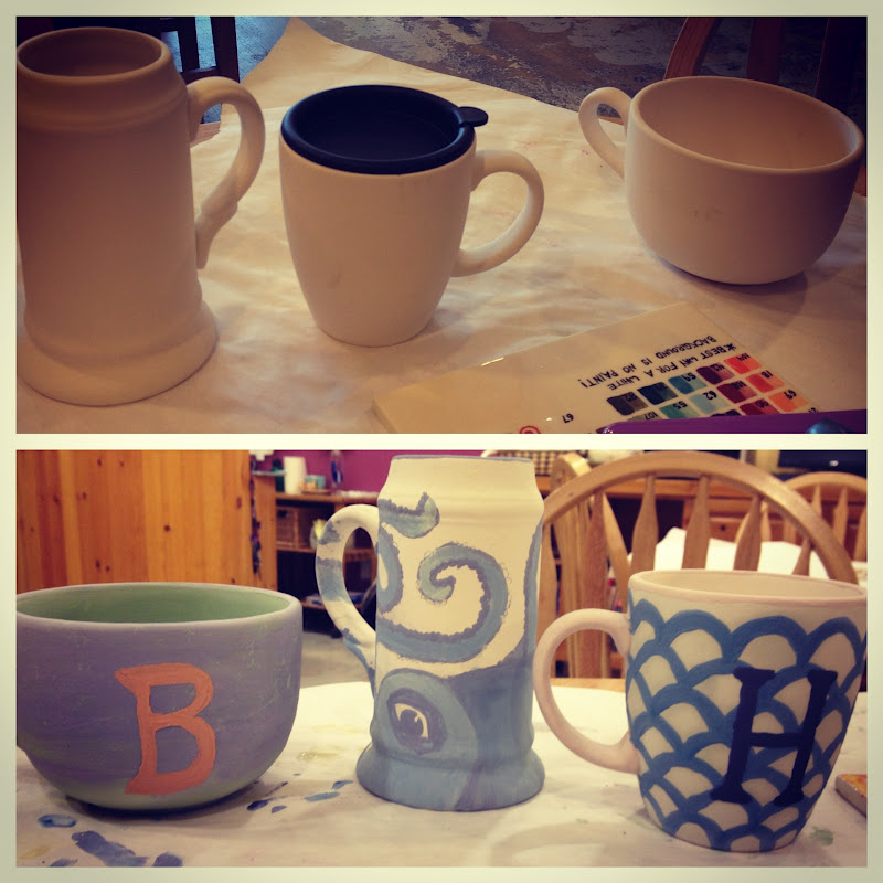 And lastly, I had a girl-date with my sorority little sister and grand little sister. We went to Color Me Mine and painted mugs. It was so relaxing and a fun thing to do while catching up. Here’s our before and after (before the glaze). We get to pick them up on Friday. Mine is (clearly) the one with the H on it, and I went with a little Caitlin Wilson textile inspiration ;).