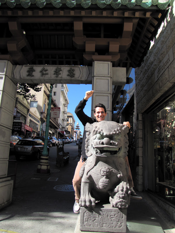 Jesse riding a foo dog? This is from Chinatown, and we actually learned that the above foo dog is a girl, and you can tell because she is tickling the baby’s belly. The other food dog is a boy.
